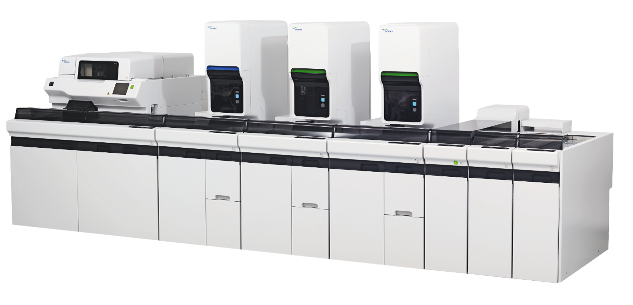 Solución de automatización compacta que integra dos analizadores hematológicos con un preparador y teñidor de laminillas SP-10 con un exclusivo sistema de respaldo en la misma plataforma analítica y un rendimiento máximo de 200 muestras por hora.